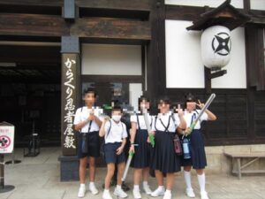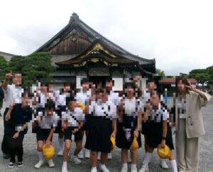 修学旅行2日目は、京都方面を満喫しました。歴史と文化に触れながら、日本の「わび・さび」の文化や日本人のよさを再確認しました。天候にも恵まれ、心晴れやかな一日を過ごしました。今日は、銀閣寺・二条城・金閣寺・映画村を見学しました。1泊2日、とても素敵な修学旅行になりました。