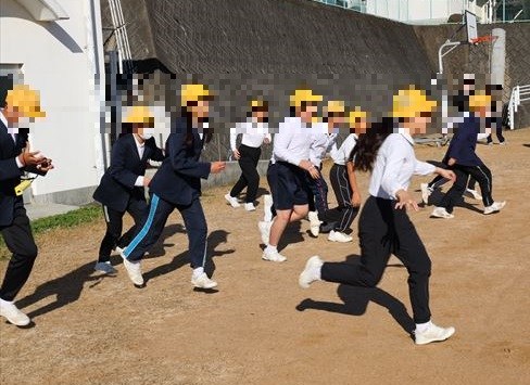 企画委員会の計画で、全校遊びをおこないました。「全校けいどろ大会」で、全校生で鬼ごっこをしました。河内小学校ならではの異年齢集団の関わり合い、大きい子と小さい子とが、ふれあう活動です。コミュニケーションの幅が広がるステキな機会となりました。