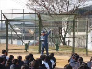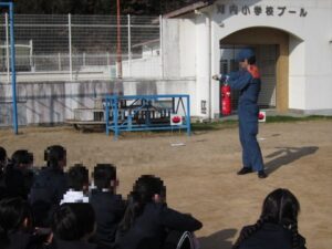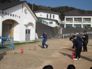 明日1/17は、阪神淡路大震災が起きてから31年を迎えます。今日は、地震を想定した避難訓練を実施しました。たつの消防署の方を迎えて、119番への通報訓練、火災をともなった消火訓練もおこないました。「自分の命は自分で守る」を合言葉に、「お・は・し・も・て」を心がけて、避難することができました。