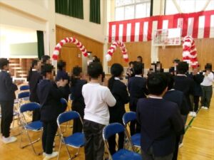 卒業式に向けて、6年生はもちろん、3~5年生も体育館で練習しています。卒業式当日まで、残すところ7日間の登校となりました。本当に早いものです。6年生は、自分たちの卒業式、真剣そのものです。在校生も6年生のため、一生懸命に取り組んでいます。明後日、本番に向けた予行演習をおこないます。6年生の皆さん、この学び舎を晴れやかに巣立ち、中学校でも、さらに頑張ってくださいね。
