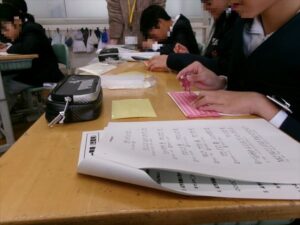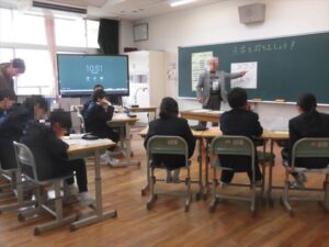 税務署の方をむかえて、国の三大義務の一つ、「納税」について学びました。税金によって、私たちの身の回りの生活が整えられていること、私たちの将来が守られていることを学びました。また、学校施設にも税金が使われていることを事務の先生から教えていただきました。